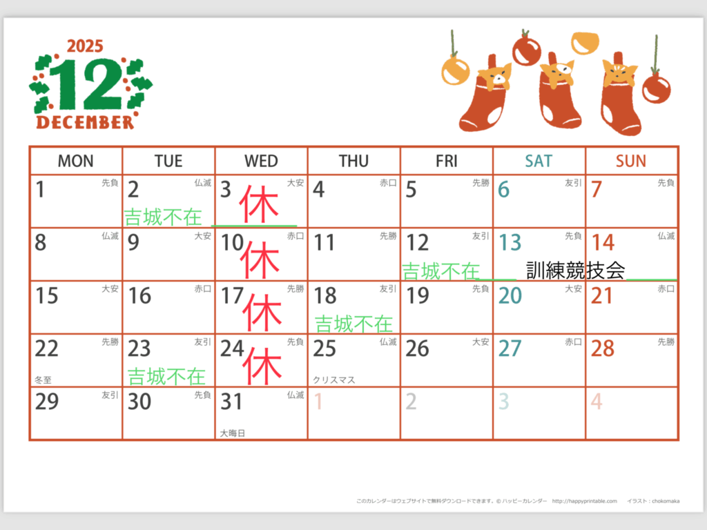 12月 お休みのおしらせ