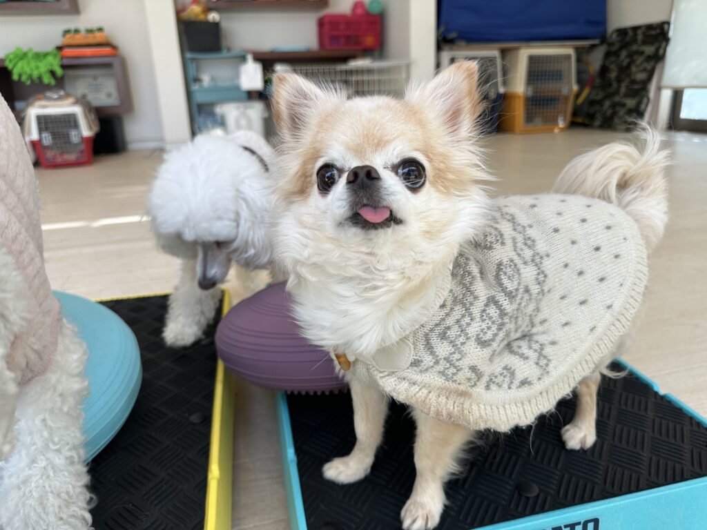 チワワの幸ちゃんはバランスディスクが得意で誇らしげにやってます。可愛いですね